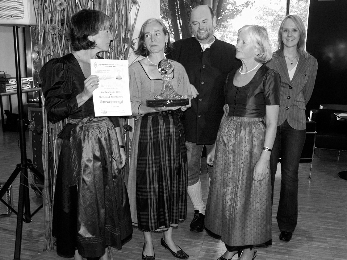 Griaß God beinand [ so Laudator Prof. Dr. R. Wittmann – wia s is ghört]! Zum viertnmoi werd heit die Sprachwurzel - naa, net verliehen, sondern vaschenkt.
