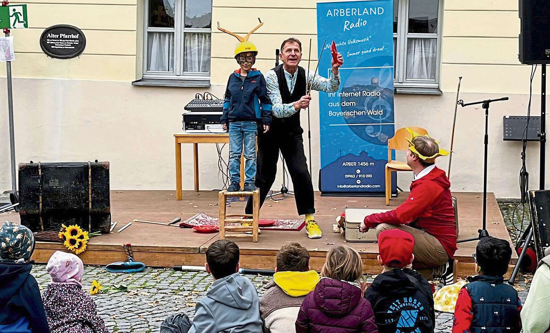 Seinen Schabernack trieb der gleichnamige Straßenkünstler mit den Kindern und brachte dadurch auch die Erwachsenen zum Lachen. Fotos: Barbara Jacob