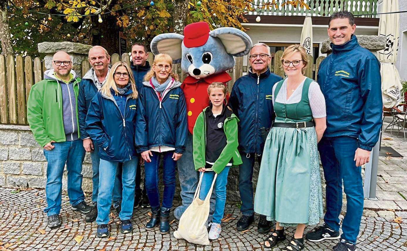 Das Marktmeilenteam hat wieder zuverlässige Arbeit geleistet (von links): Dominic Rauscher, Helmut Höglmeier, Rosi Aumer, zweiter Bürgermeister Konrad Feldmeier, Angelika Höglmeier, Heinrich Stenzel, Lydia Fischer, Bürgermeister Andreas Liebl mit der beliebten MiMaMeiMaus und ihrem Begleitkind Marlena Liebl.
