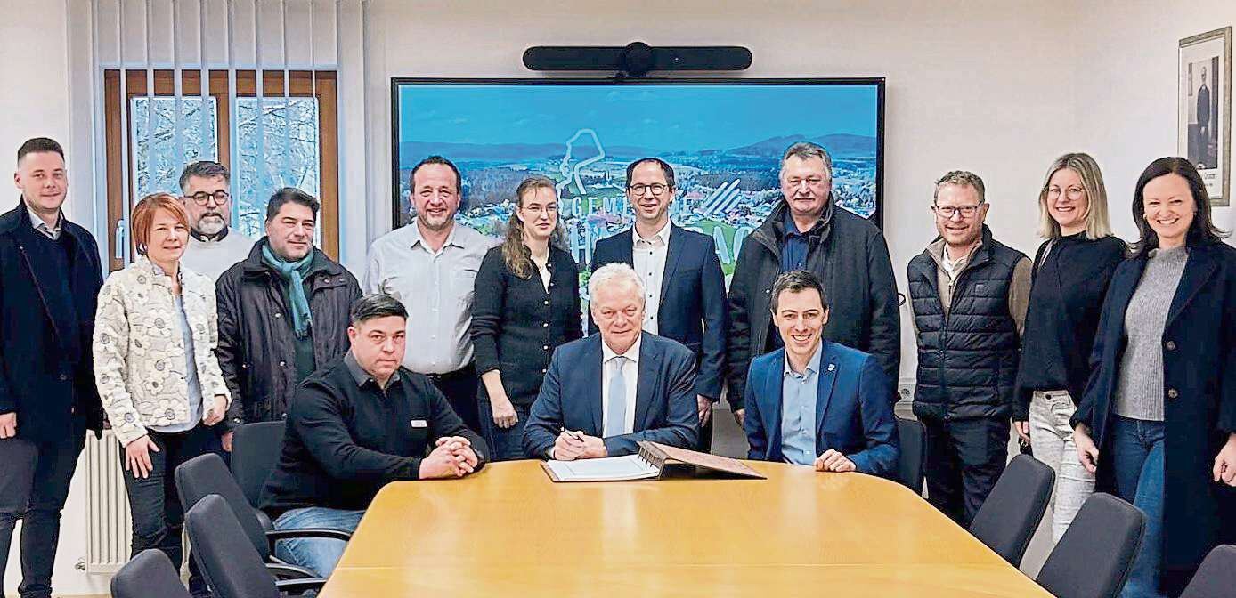 Minister Rainer umringt von Gästen beim Eintrag ins Goldene Buch der Gemeinde, rechts neben ihm Bürgermeister Simon Haas - Fotos: Andreas Fischer