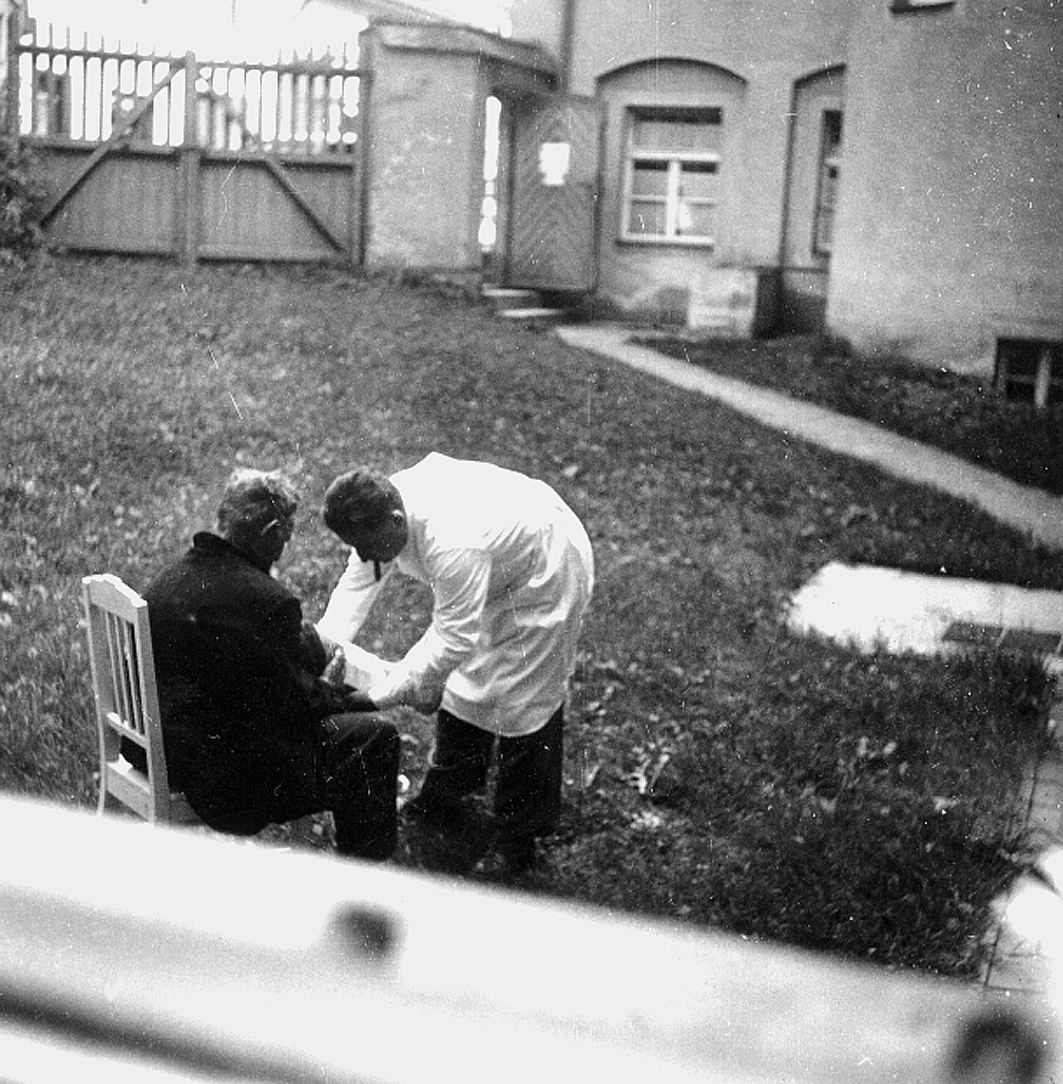 Bei einem Patienten, zu dem ich gerufen wurde, stellte ich einen tiefliegenden Abszess am Gesäß fest, welcher jedoch zum Aufschneiden noch nicht reif genug war. Ich erklärte dies dem Mann und sagte, dass ich eine Abszess-Salbe auflegen und erst am nächsten Tag operativ vorgehen werde. Diese Entscheidung gefiel dem Patienten aber gar nicht. Er war ernstlich böse auf mich und sagte, ich bräuchte dann auch morgen gar nicht kommen. Diese Einstellung gefiel wiederum mir nicht und ich ignorierte sie auch. Als ich am anderen Tag wieder hinfuhr, ins Haus trat und vor der Kammertür des Patienten stand, war diese versperrt. Ich klopfte und bat um Einlass, hörte aber nur ein böses Gemurmel. Nun gab ich der Tür einen Stoß und schon war ich drinnen. Ich hob die Bettdecke zur Seite, zückte mein Skalpell und schnitt tief in den Abszess, der nun auch reif war und bluteitrig ausfloss. Nach dem Verbinden ging ich wieder wortlos aus dem Haus.
