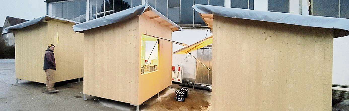Die Buden sind fast fertig und warten auf ihren Einsatz.