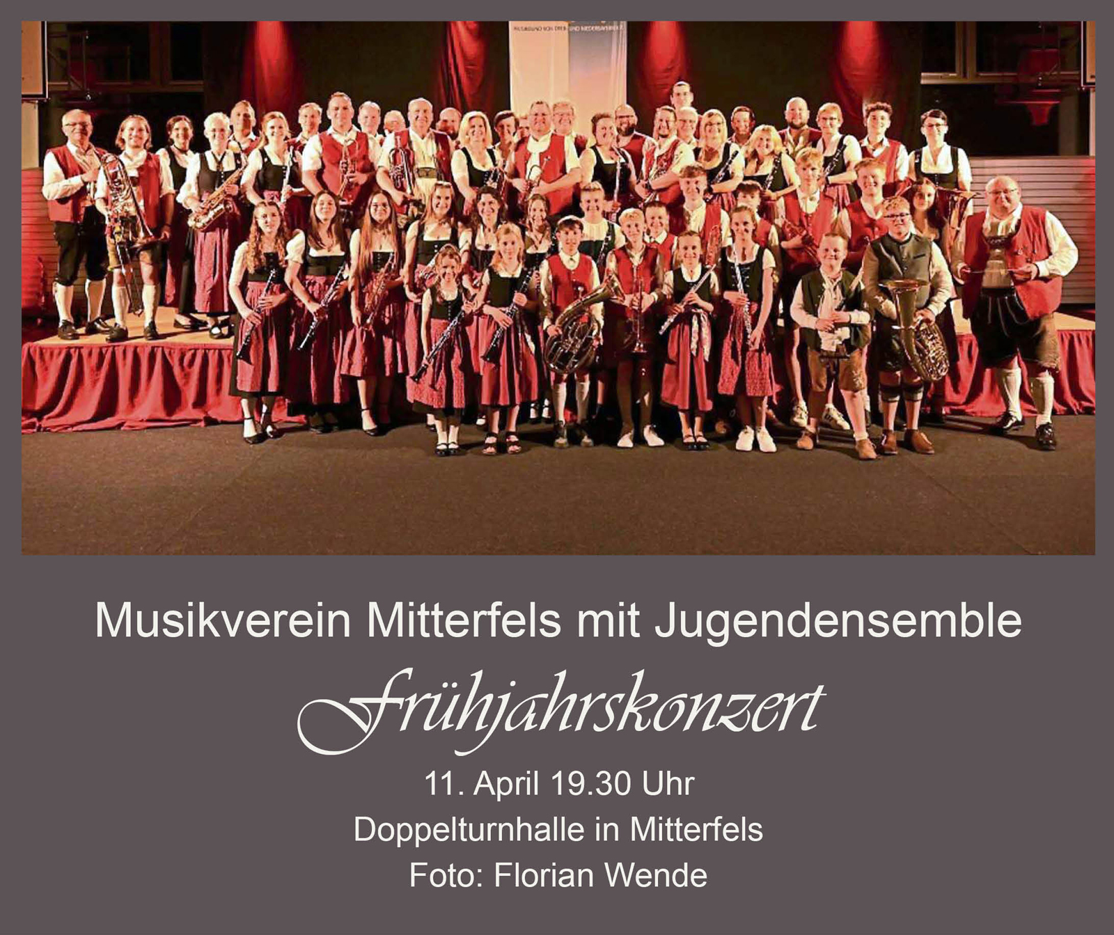 Unter der Leitung von Dirigent Jürgen Malterer erwartet das Publikum an diesem Abend ein abwechslungsreiches Programm mit Musik aus verschiedensten Stilrichtungen. Auch das Jugendensemble des Musikvereins Mitterfels unter der Leitung von Anna Schedlbauer gestaltet den Abend musikalisch mit. Ein besonderes Highlight ist der gemeinsame Auftritt des großen Orchesters zusammen mit dem Jugendensemble.
