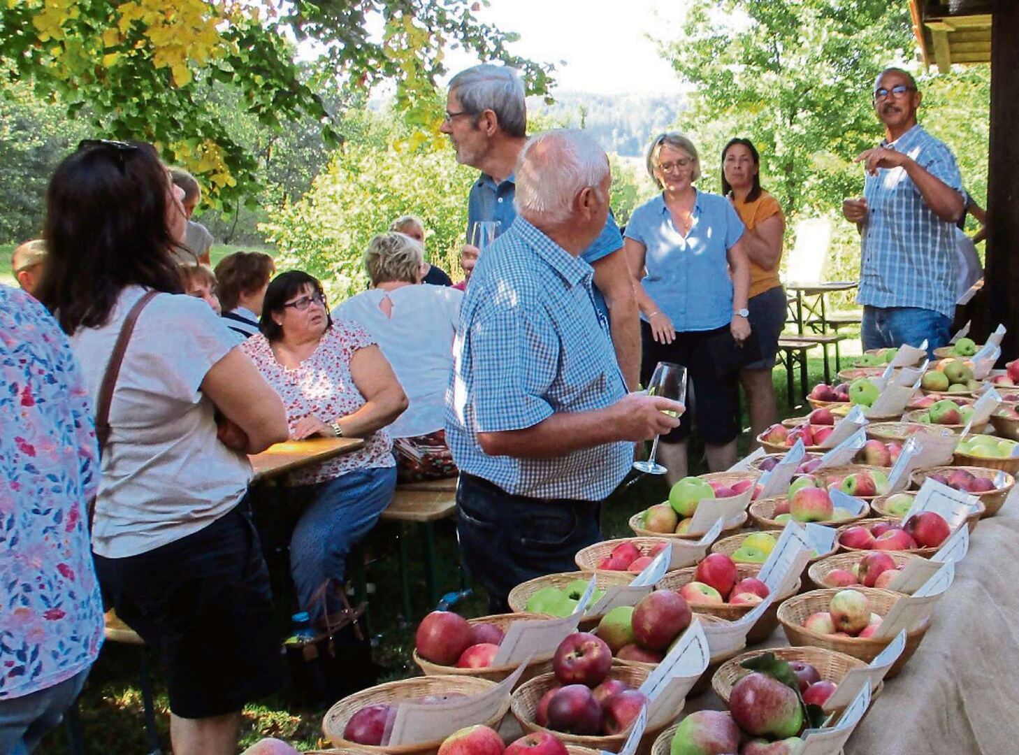 Eine Obstausstellung informierte die Teilnehmer über die große Vielfalt der Apfelsorten. Foto: Harald Götz