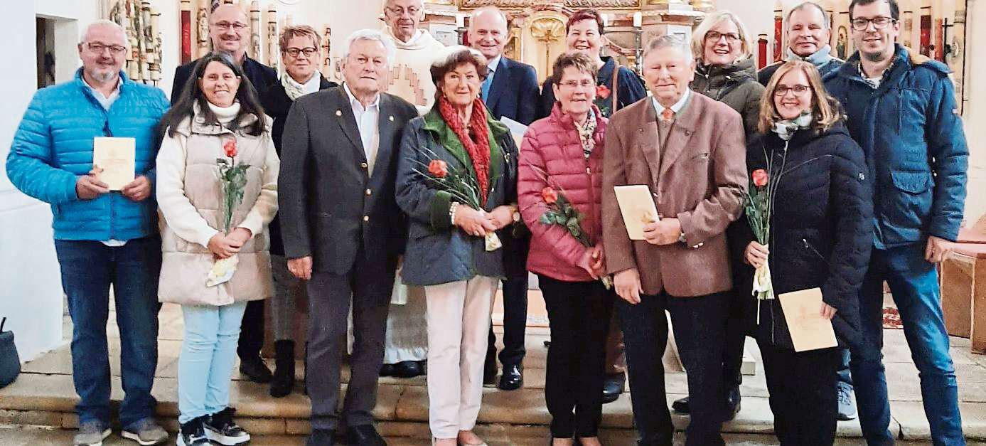 Folgende Ehepaare feierten ihr Ehejubiläum: Nadine und Michael Piendl zehn Jahre, Christine und Volker Urban 20 Jahre, Birgit und Richard Marchner 25 Jahre, Ursula und Martin Spanfeldner 25 Jahre, Kerstin und Christian Piendl 30 Jahre, Marianne und Otto Dilger 55 Jahre, Gerda und Theo Breu 60 Jahre.