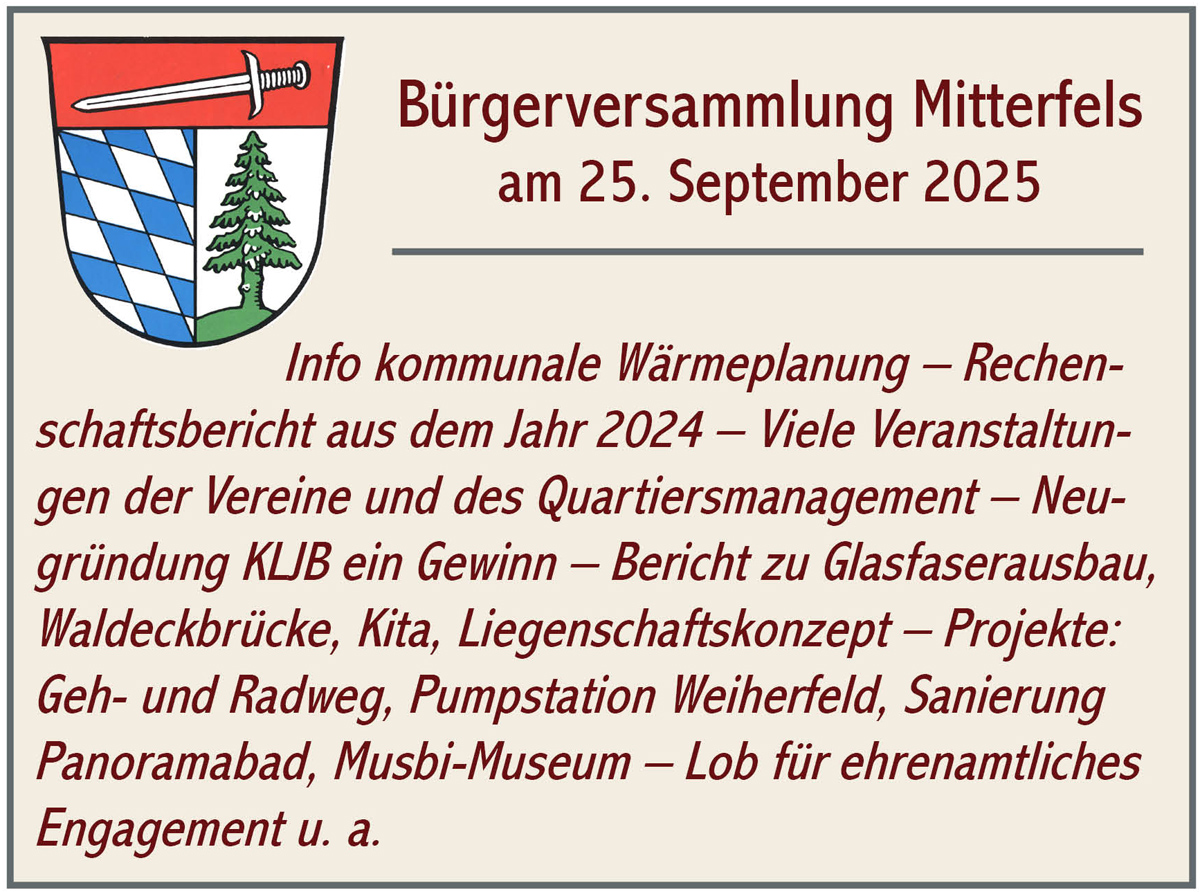 Auch die Neugründung der KLJB Mitterfels sei ein großer Gewinn für den Ort. Für das laufende Jahr 2025 berichtete Liebl, dass mit dem Glasfaserausbau im Marktgemeindebereich begonnen wurde. Die Fertigstellung der Brücke Waldeck und der Kindertagesstätte sei noch in diesem Jahr vorgesehen. Außerdem erarbeitet die Marktgemeinde gerade ein Liegenschaftskonzept für die erworbenen Flächen und Gebäude.