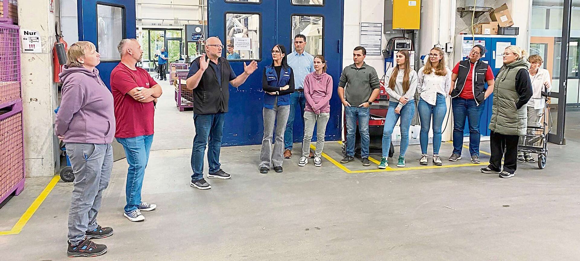 Die Teilnehmer der Aktion „Schichtwechsel“ besichtigten die Bruder-Konrad-Werkstätte in Mitterfels. Produktionsleiter Gerhard Macht (3. v. l.) erklärte ihnen die Arbeitsabläufe.