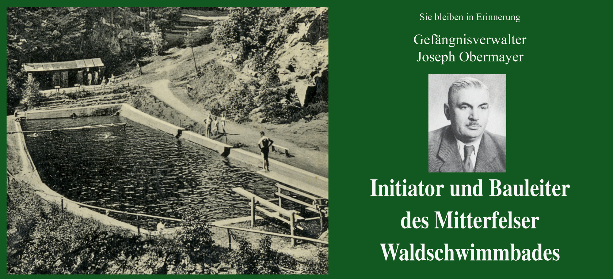1934 verschlugen die Zeitläufte den Verwalter des Memminger Landgerichtsgefängnisses Joseph Obermayer in die kleine Welt des Mitterfelser Gerichts. Schnell hatte er sich mit der neuen Umgebung angefreundet. Burggraben, Schlossberg und Perlbachtal, alles direkt vor seiner Haustüre, bewogen ihn, mit seinen Gefangenen die dortigen Spazierwege instand zu setzen und auszubauen.