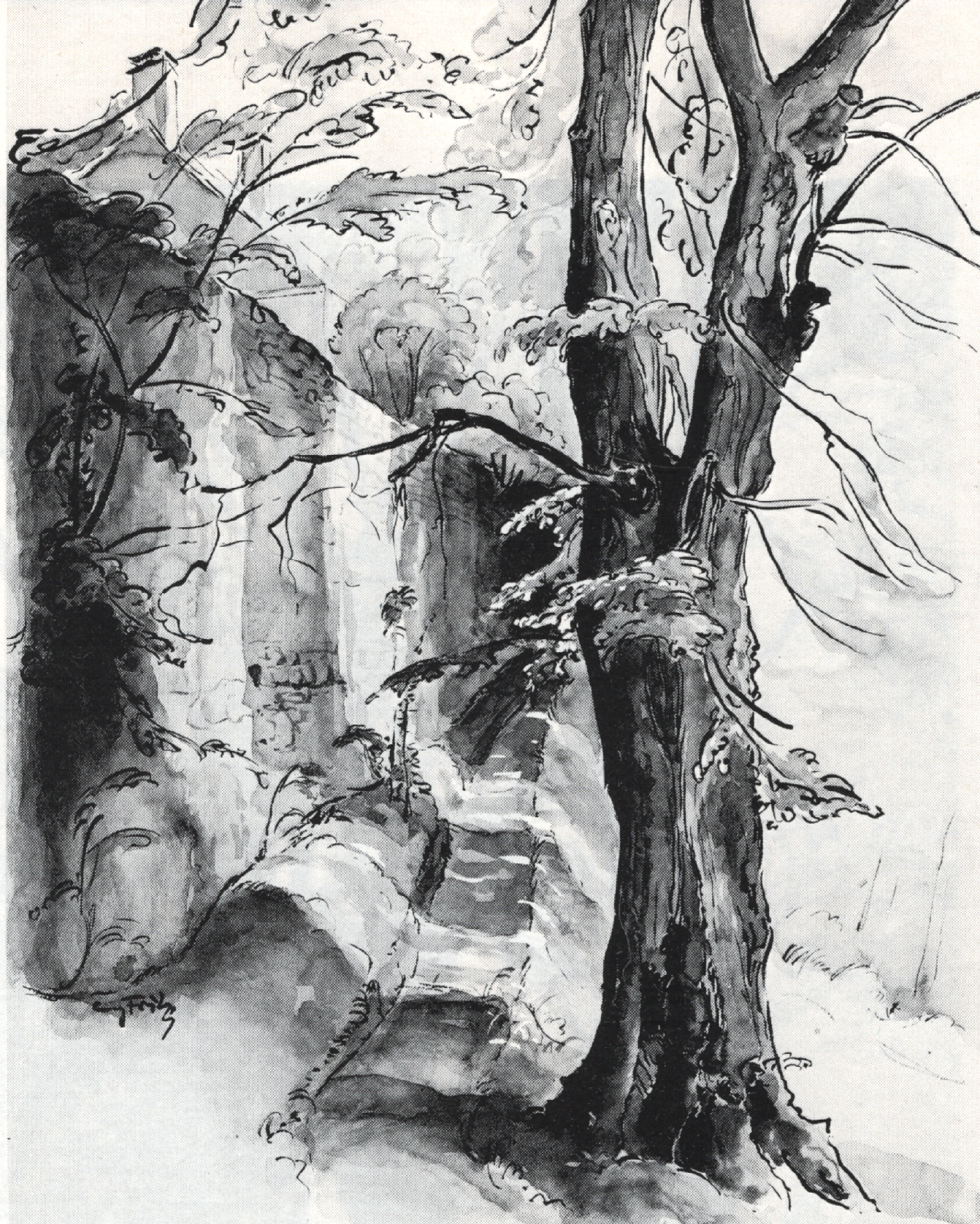 Am Schloßberg Mitterfels, Naturstudie: Tusche, um 1950
