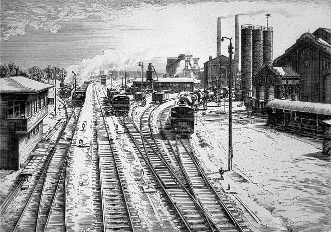 Werksbahn bei der Zeche Sterkrade, Radierung, 1940