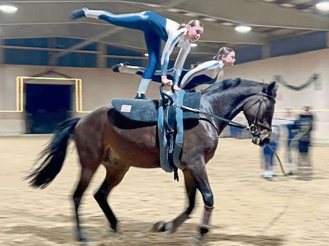 Nachdem sich alle gestärkt hatten, ging es mit einer Aufführung der Voltigiergruppen des Reit- und Fahrvereins weiter. Sie zeigten mit den Pferden Avalino und Moro in Schritt und Trab verschiedene Küren. Zuletzt wurde die Eisprinzessin in märchenhafter Kleidung vorgestellt. Sie zeigten im Schritt, Trab und Galopp auf den gescheckten Schulpferden Layla und Peppina ein Pas de deux zur bekannten Musik aus dem gleichnamigen Film. Als musikalische Live-Begleitung führte Barbara Fellinger mit Gesang durch das ganze Programm. Zum Ende wurde „Stille Nacht, heilige Nacht“ gesungen, der Nikolaus kam und überreichte den Kindern kleine Geschenke.